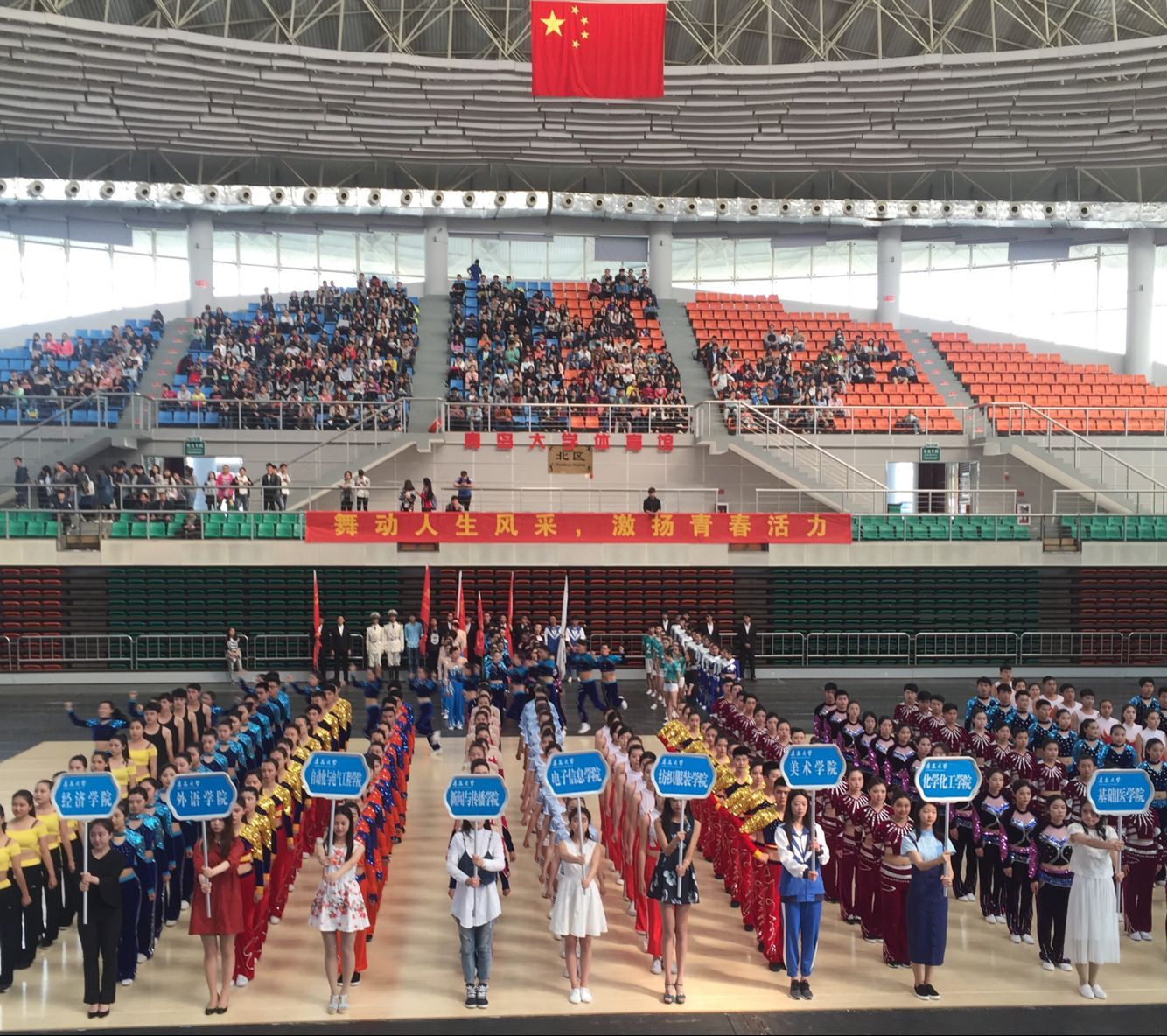 5月14日上午8时30分, 由党委学生工作部、校团委、校体委、beat365亚洲体育官方网站联合主办的“2016年校园健美操大赛”在浮山校区体育馆举行。来自全校21个学院的代表队参加了本次比赛,部分单位负责人、beat365亚洲体育官方网站党政领导和近2000名同学到场观战。校党委常委、副校长张铁柱致开幕词并宣布比赛开幕。