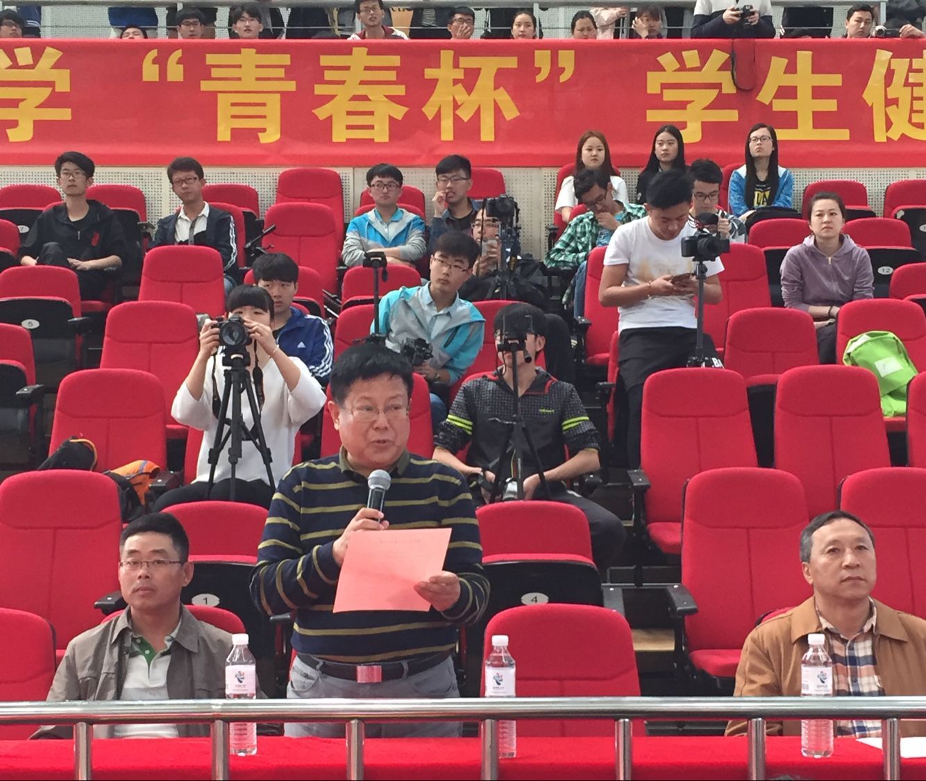 张校长指出,健美操运动作为实施《全民健身计划纲要》的一项重要措施,已得到广大群众的认可,作为一项健与美为基础的体育项目,健美操满足了大众追求健康、追求美的需求,具有极其广泛的群众基础。健美操运动课程是beat365最受欢迎体育课程之一,许多学院健美操运动开展得也很好,而且运动水平比较高。“beat365亚洲体育官方网站校园健美操大赛”也是beat365的传统赛事,也是每年体育运动大会的重要组成部分,我们举办该赛事的目的是增强学生体质、推广健美操运动、展现学院的精神风貌、活跃校园体育文化生活,希望大家发扬友谊第一、比赛第二的精神,赛出风格、赛出水平,取得佳绩。