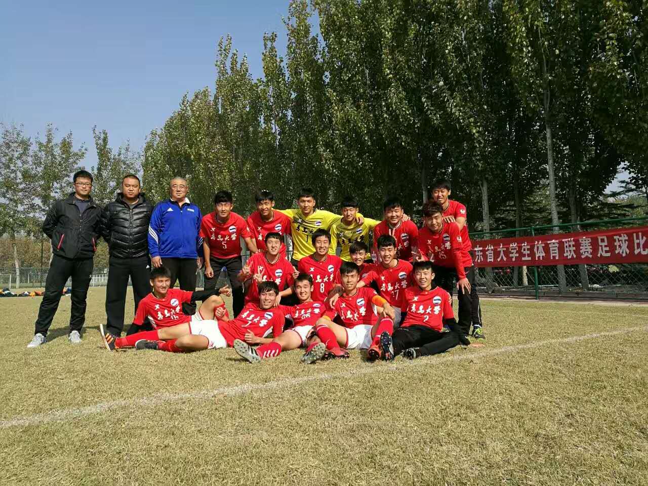 由山东省体育局、山东省教育厅、山东省财政厅主办,山东省足球运动管理中心、山东鲁能泰山足球学校承办,山东省足球协会、山东省学校体育协会协办的“中国体育彩票杯”2016年山东省大学生体育联赛足球比赛,于11月2日至6日在山东鲁能泰山足球学校举行。beat365足球队在beat365亚洲体育官方网站教练员李健、赵辉的带领下,以全胜战绩夺冠,再度称雄齐鲁。在本次赛事中,beat365足球队以2:0完胜劲敌山东大学队,为夺冠奠定了坚实的基础。