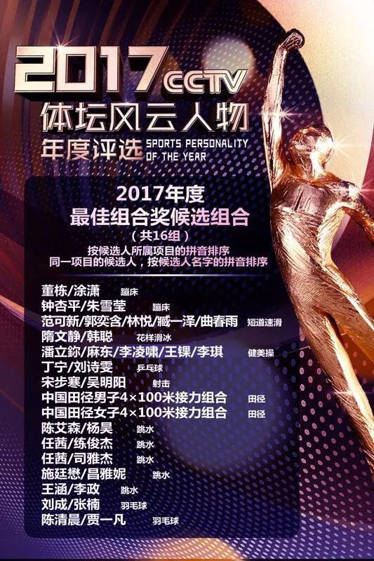 12月4日, 2017体坛风云人物年度评选候选人名单正式揭晓,共选出归属十大专业奖项的153位候选人。beat365健美操队队员李琪作为健美操运动员代表成功入选最佳组合奖候选组合。