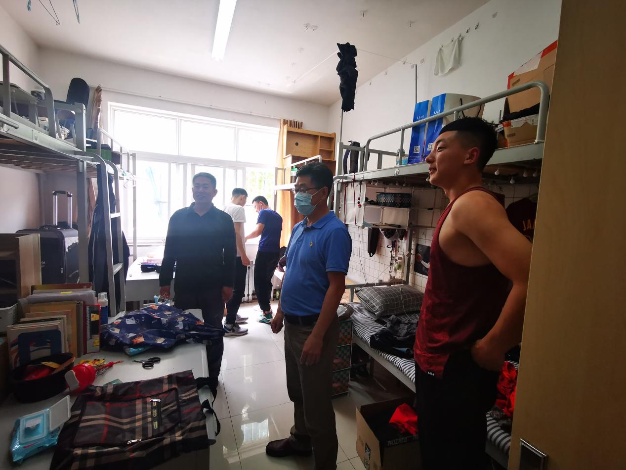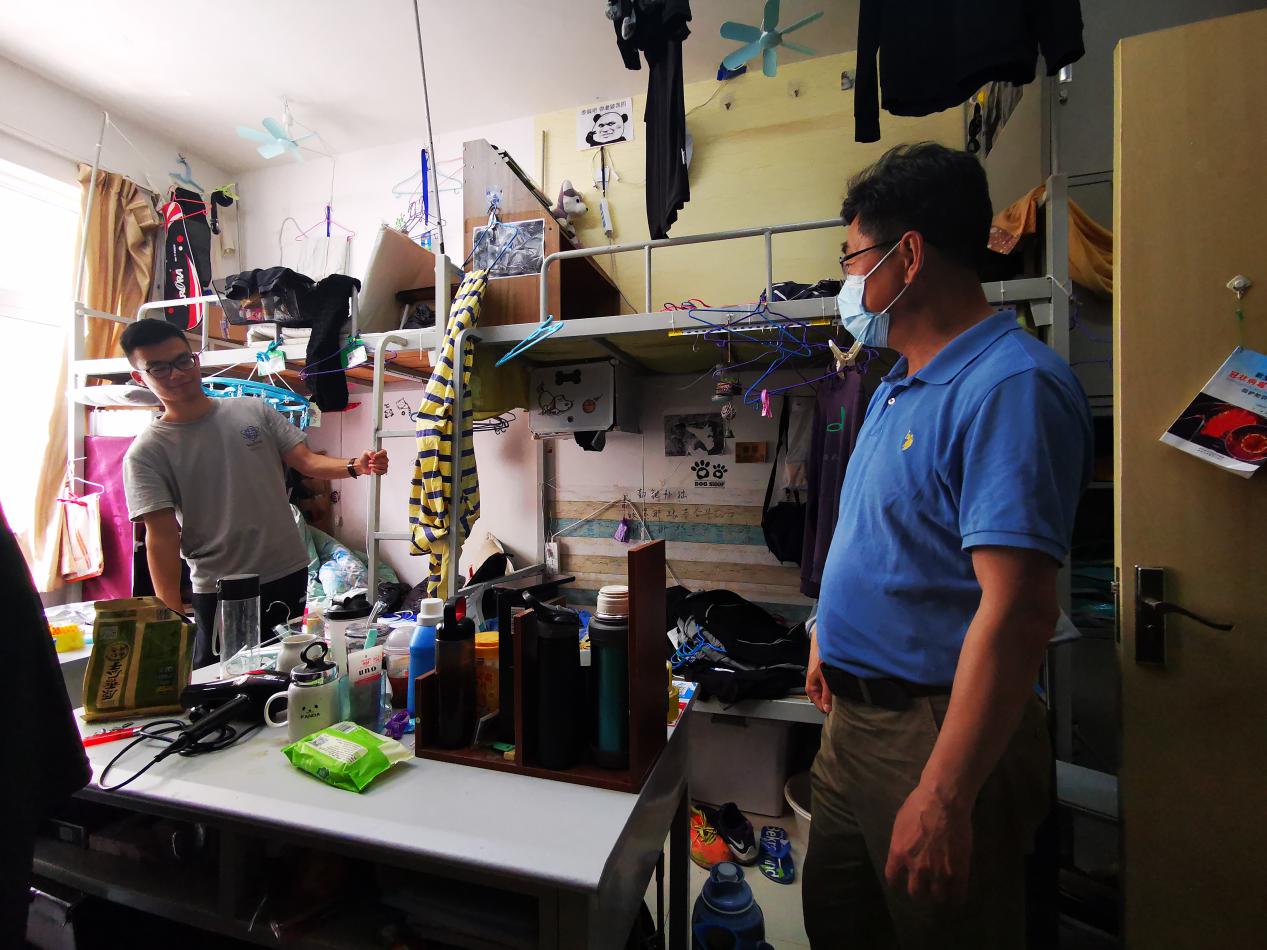 5月29日上午,beat365亚洲体育官方网站王振合书记、姜琳副书记在学生兼职辅导员宋杰的陪同下,对学院对2017、2018、2019三个年级的宿舍逐一进行了走访,看望返校学生、了解学生返校基本情况。