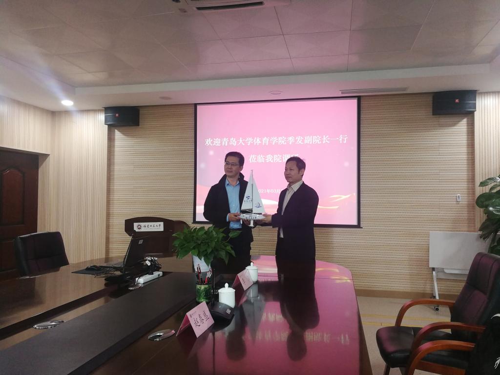 在福建师范大学调研期间,季发一行与福建师范大学体育科学学院党委书记陈振祯、院长方千华、党委副书记钟晓波、副院长许文鑫、运动训练系主任徐建华、体育教育系主任郑祥荣、体育教育系专业负责人王深等领导和专家就体育教育专业建设、大学公共体育改革、硕士研究生培养、人才引进等模块进行了座谈交流。并通过分组讨论、实地参观等形式,深入学习了福建师大体育人才培养模式、教学模式、一流课程建设、教材建设、教改项目、人才培养质量提升、公共体育课内外一体化建设、课程思政、信息化教学、档案管理、场馆建设与管理等方面的具体内容,为双方未来的对接学习交流打下了良好的基础。福建师范大学体育科学学院“1+3流动培养模式”的专业性和规范性、体育人才培养方案制定的科学性和严谨性、体育教育专业认证的系统性和可持续发展性等方面,都是非常值得学习和深省的。