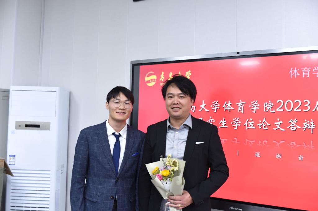 自硕士研究生入学以来,王传志便对导师原阳老师表达了考博的想法。研究生期间更是在原阳老师的指导下踊跃参加专业方向的大型会议并作汇报。在校期间,多次参加学院组织的中小学体育教研活动,经常与老师探讨专业领域的疑惑,导师总是不厌其烦予以指导。他在参加解剖学年会中,对运动促进健康的生理生化机制产生了浓厚的兴趣,这激发了他进一步探索运动人体科学专业的决心。他还利用课余时间,去了青医附院心内科实习,并了解到心血管相关疾病的危害,以及运动促进心血管健康的益处,这一经历进一步加深了他对领域探索的决心。
