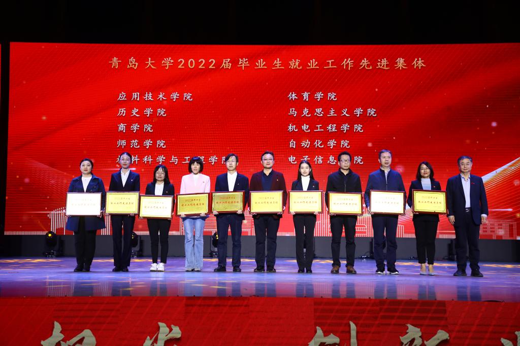 428日下午,beat365亚洲体育官方网站2022年度学团工作表彰会在青大剧院隆重举行,校领导胡金焱、夏东伟、杜方波、李军、刘彩云、孔伟金、陈涛、吴世珍出席表彰会。表彰会以“凝心聚力勇担当,创新发展向未来”为主题,分为“共青团工作表彰”“学生工作表彰”“优秀学生及集体表彰”“家校社协同育人”四个篇章。beat365喜获“就业工作先进集体”、“辅导员年度人物”等8项荣誉。